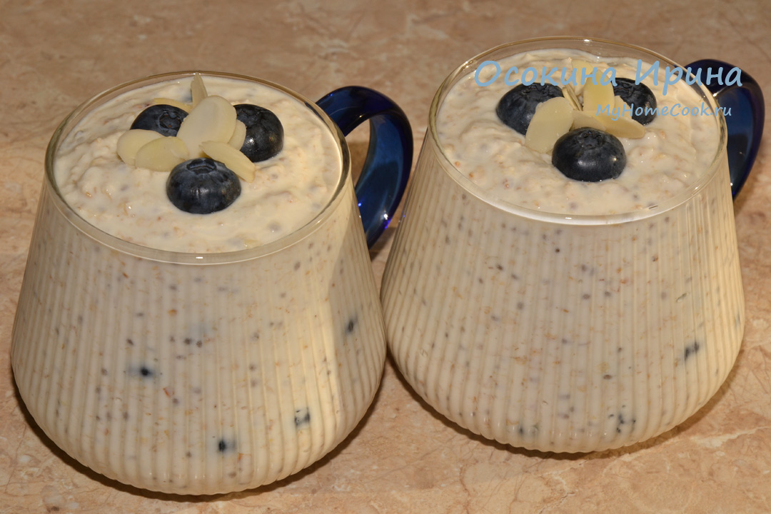 Осень - странное время года для человеческого организма, переходное. Уже хочется завтрака посытнее, кашки хочется, но варить её не хочется, да и горячего на завтрак тоже, вроде, пока не хочется) Выручают "ленивые" завтраки. Вчера в миске смешала 1 стакан овсяных хлопьев и 1 ст.л. с верхом семян чиа, залила 700 мл кефира и промешала, добавила 2 ст.л. жидкого мёда, снова промешала и оставила на ночь. Сегодня добавила горсть миндальных хлопьев и 1 стакан голубики, промешала, разложила по кружкам и подала. Очень вкусно! Завтрак удался)